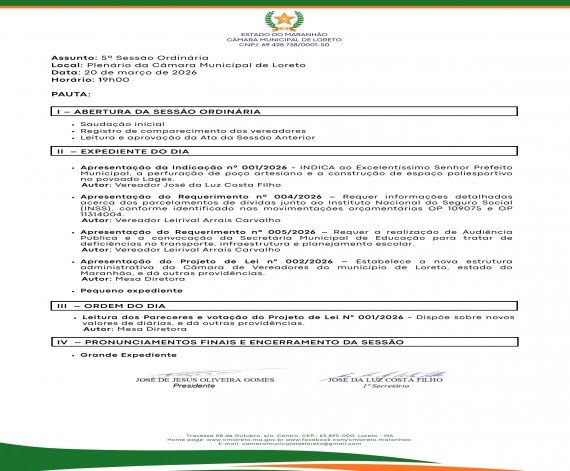 Comunicado de suspensão da 4ª Sessao Ordinária da Câmara de Loreto.