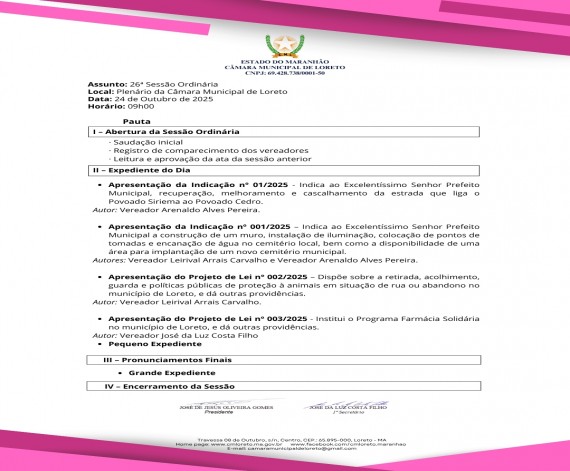 Participe da 4ª Sessão Ordinária da Câmara de Loreto.